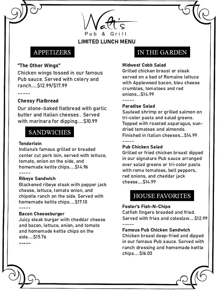 Our Menus Main Sunday Brunch Late Night Menu Friday & Saturday Banquet Menu Kid's Menu Limited Lunch Menu Limited Dinner Menu Download/View Full Menu PDF Booking Events Limited Lunch Menu
