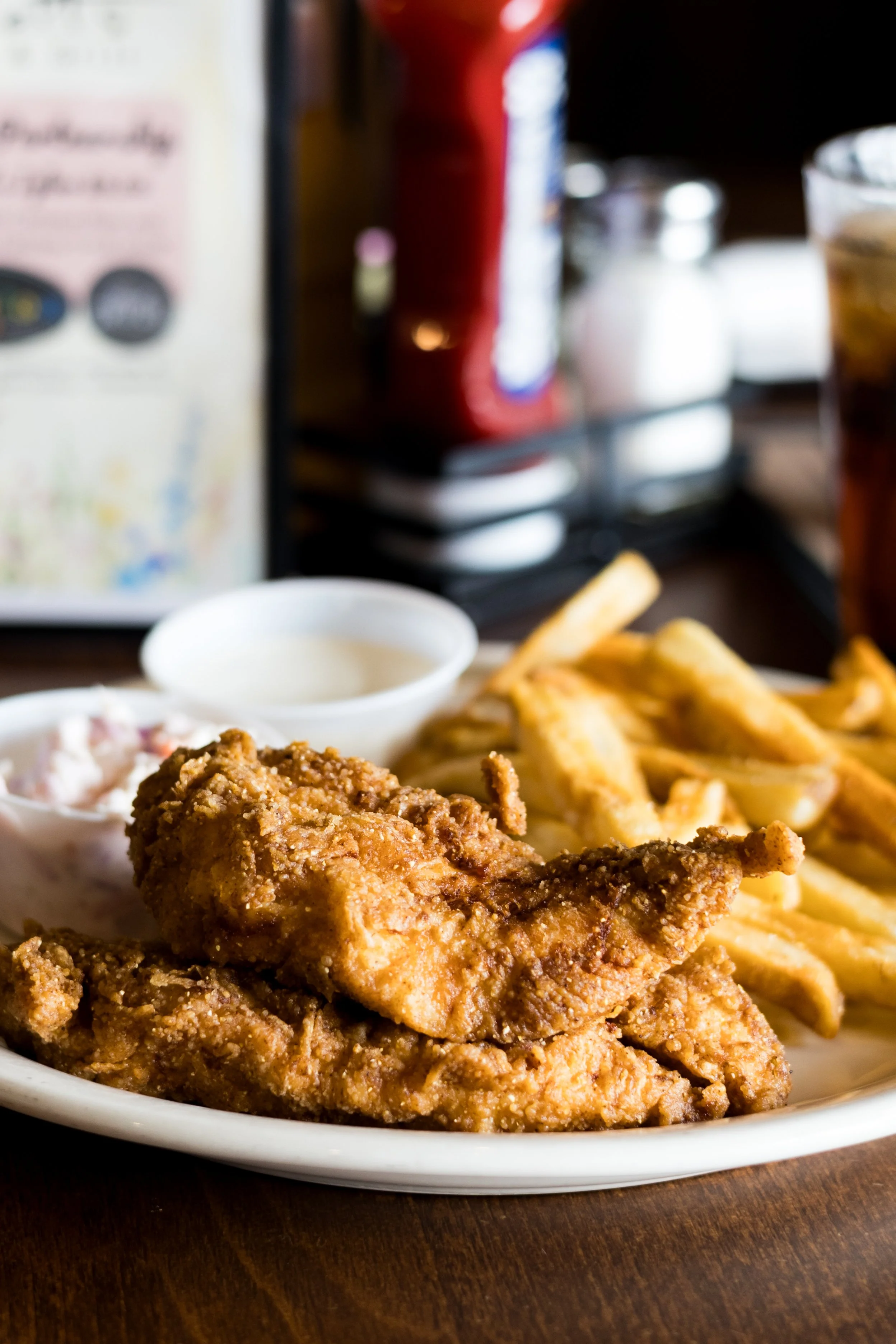 Catfish fingers breaded and fried. Served with coleslaw and tartar sauce.